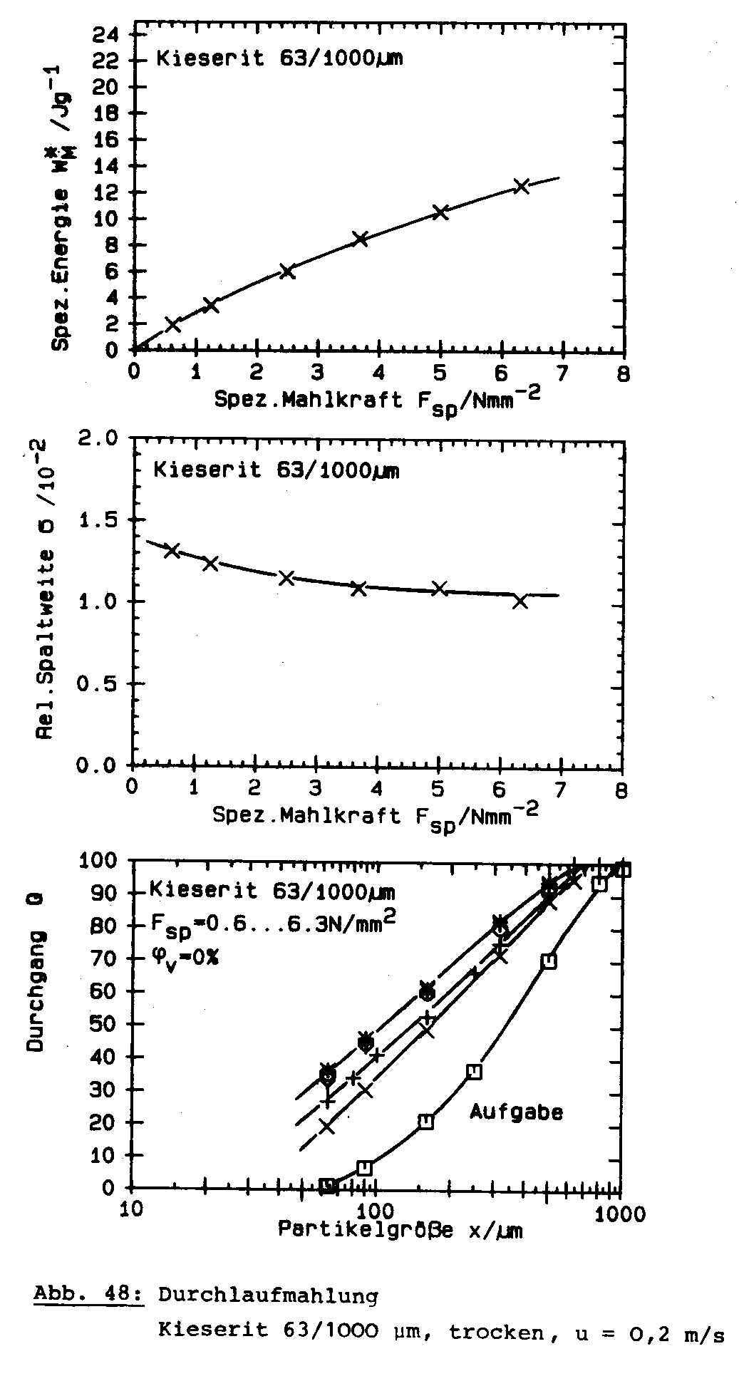 This page as well as the following web pages show the results of Schwechten [2] of single pass grinding tests with limestone, quartz, Rammelsberg ore and cement clinker as well as a simulated closed circuit grinding test with Kieserit at variation of feed size, moisture content and roller speed.