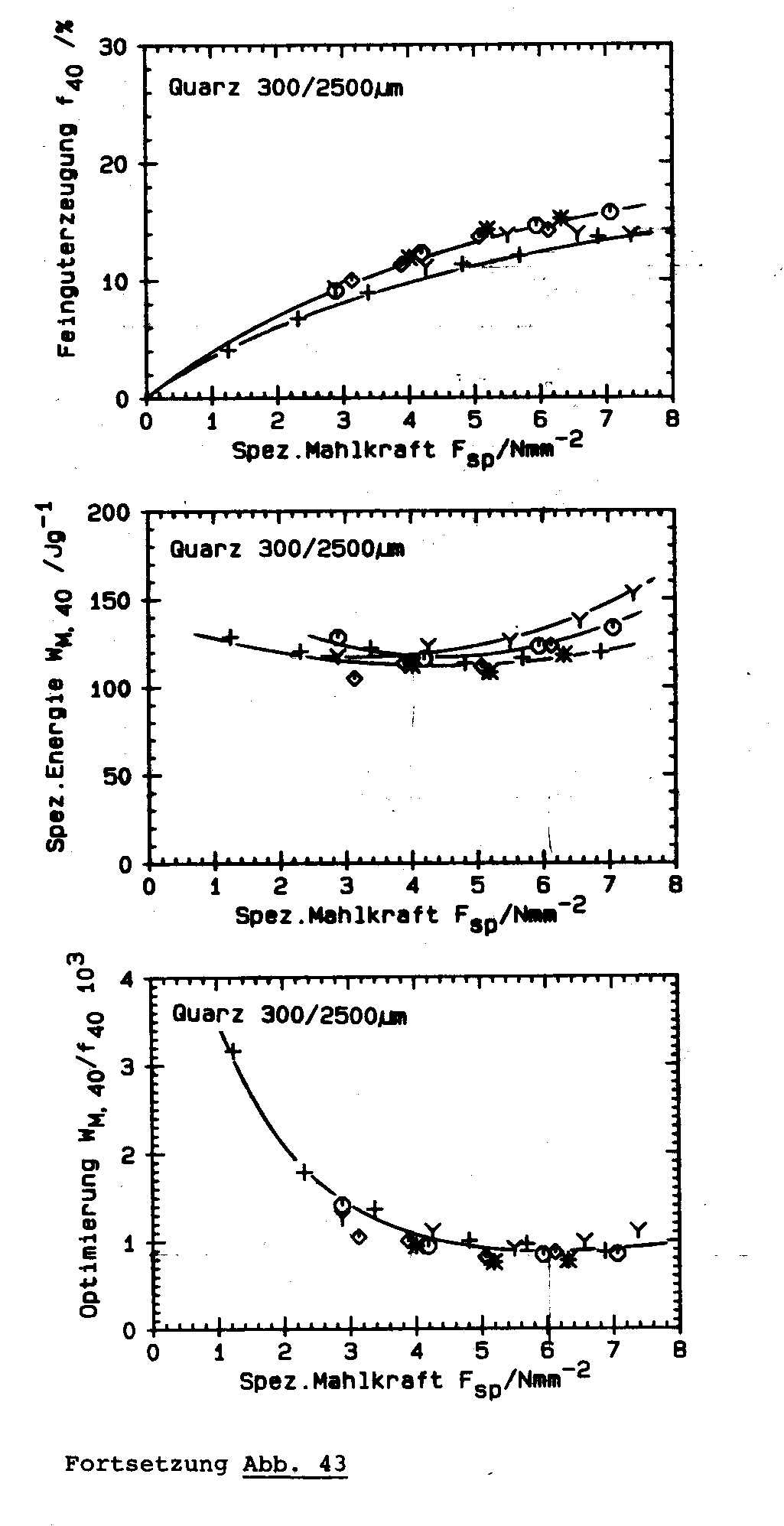 This page as well as the following web pages show the results of Schwechten [2] of single pass grinding tests with limestone, quartz, Rammelsberg ore and cement clinker as well as a simulated closed circuit grinding test with Kieserit at variation of feed size, moisture content and roller speed.