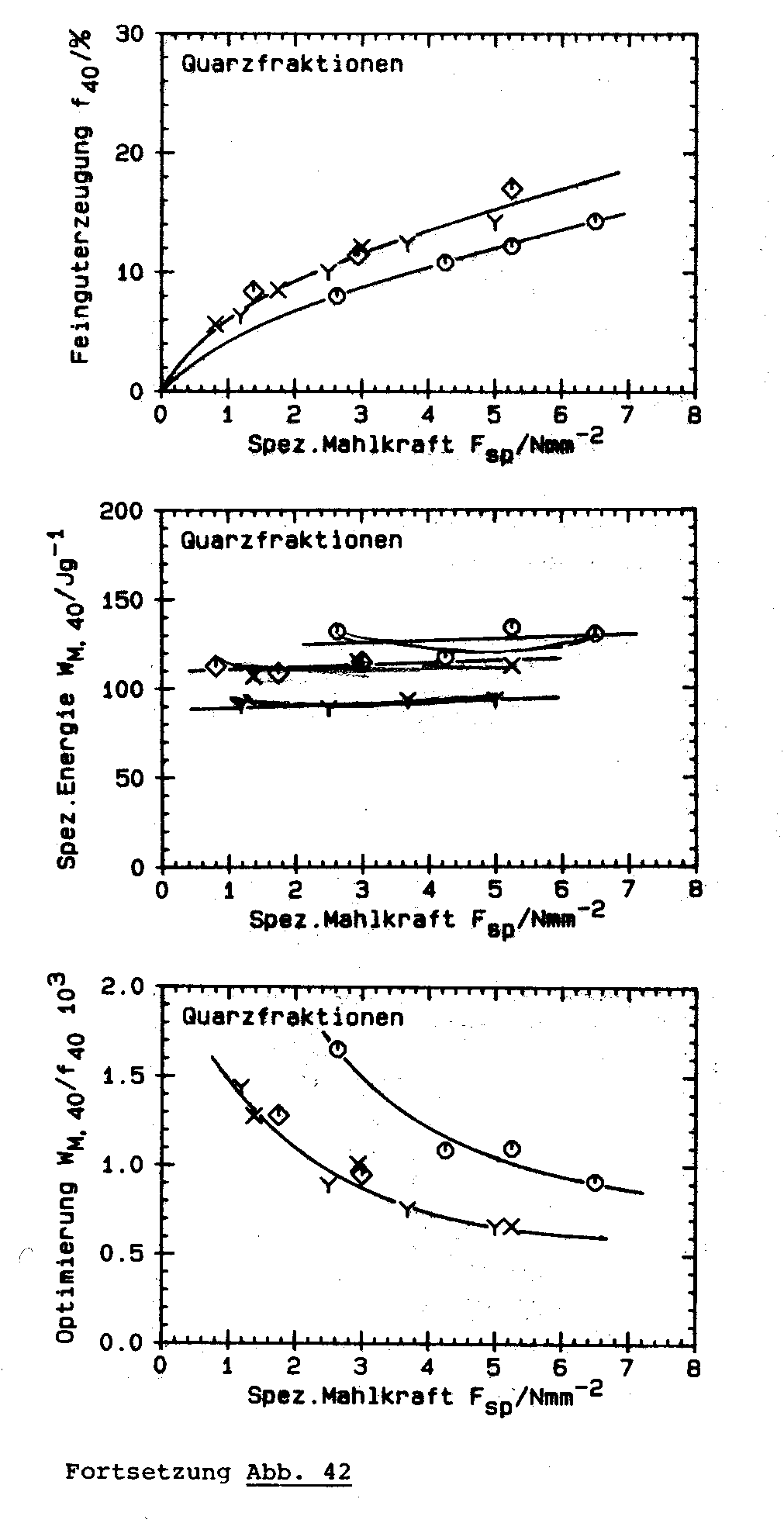 This page as well as the following web pages show the results of Schwechten [2] of single pass grinding tests with limestone, quartz, Rammelsberg ore and cement clinker as well as a simulated closed circuit grinding test with Kieserit at variation of feed size, moisture content and roller speed.