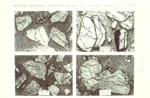 Further on selected particle size distributions of the feed material and the mill product are shown.